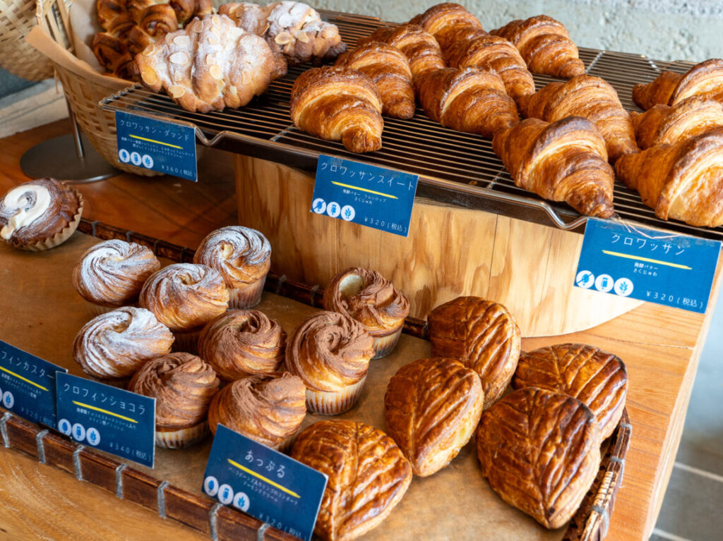 同フロアでは、漆や織、刺し子、陶器、家具やコルクのバッグや小物などの販売もあります。味わいのある作品が多くて、それぞれの工房を訪ねているような雰囲気でぐるりと一周することができます。お菓子や食品、日本酒などのコーナーも。