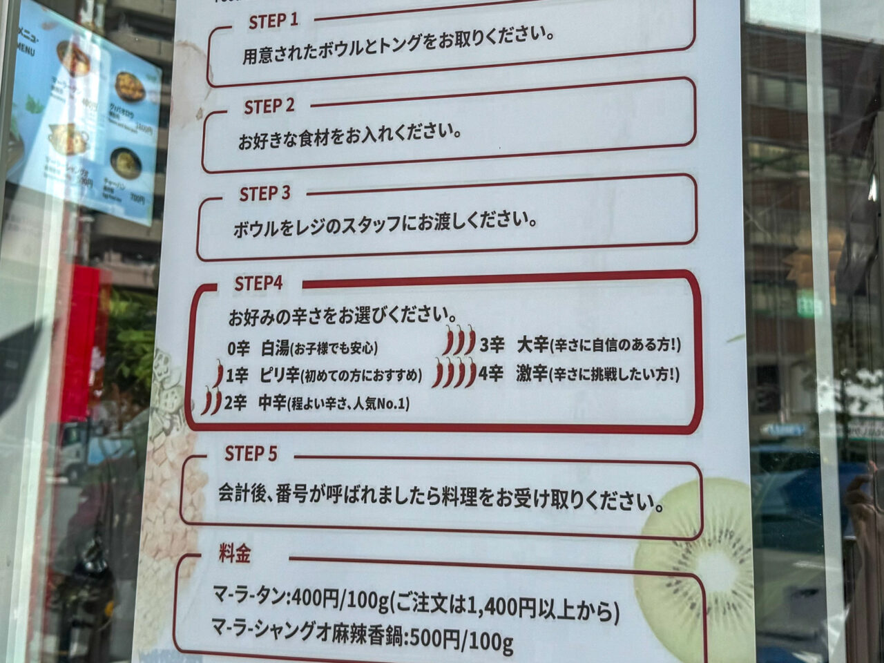 麻辣湯は400円/100gで、注文は1,400円以上からだそうです。