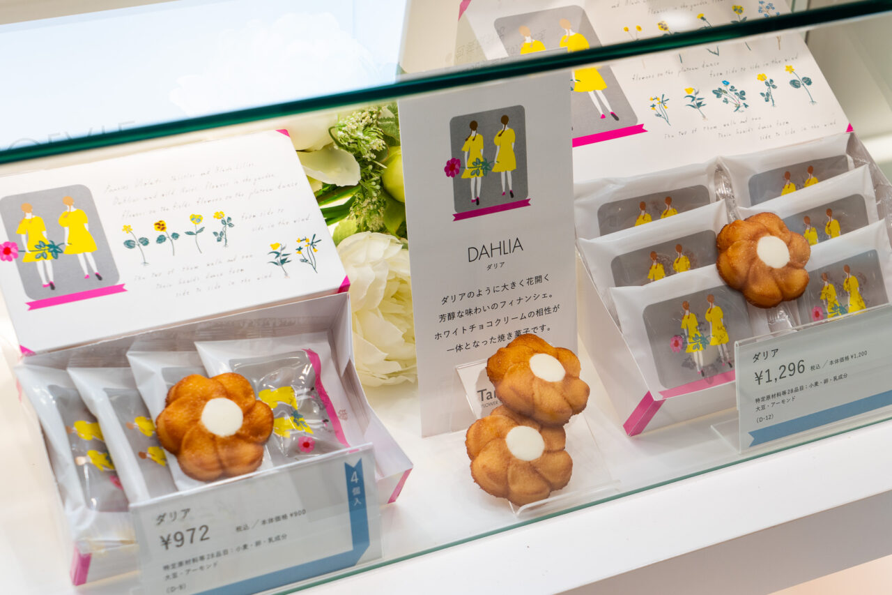 発酵バター、アーモンドやヘーゼルナッツを練りこんだフィナンシェと、ホワイトチョコクリームを合わせた「ダリア」も愛らしいデザインでテーブルを華やかに彩ります。