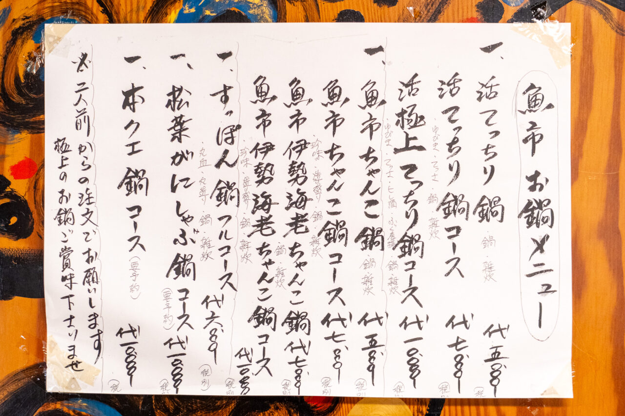 通し営業されているため、ちょっと早めの時間から軽く一杯楽しみたいときにも最適。これからの季節には、旬の魚を使ったお鍋のコースもおすすめです。