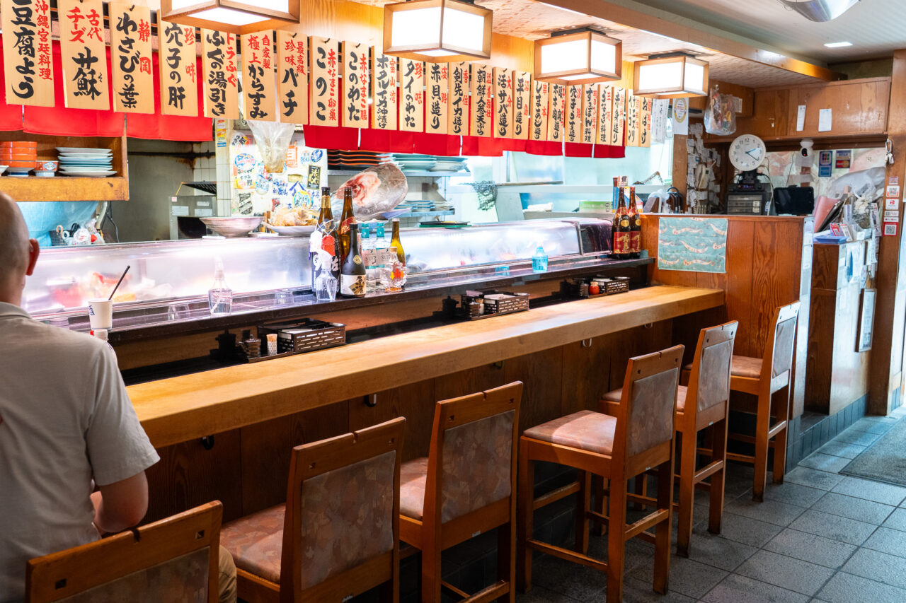 きんえいアポロビル地下2階「寿し割烹 魚市 本店」は、1972年にオープンして以来、半世紀以上にわたって地元の方々に親しまれてきた老舗の名店です。天王寺エリアで「本当に美味しい魚が食べられるお店」として信頼を集め、平日でも多くのお客さんが訪れる人気店となっています。