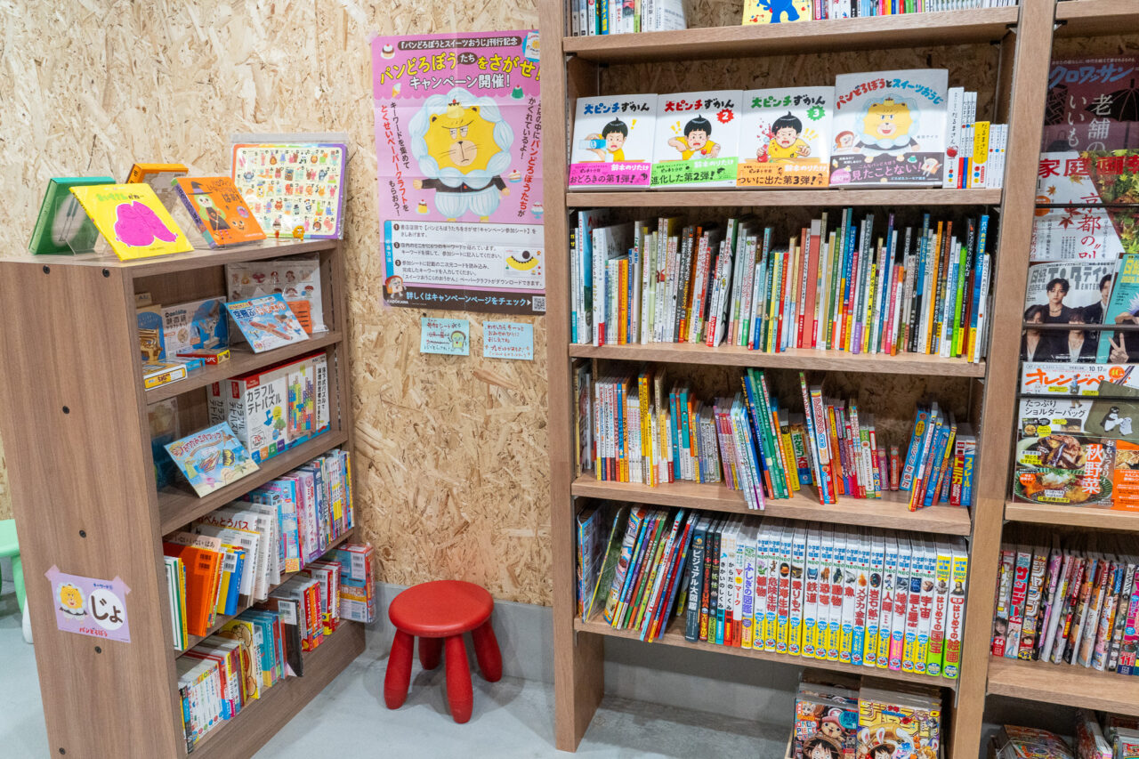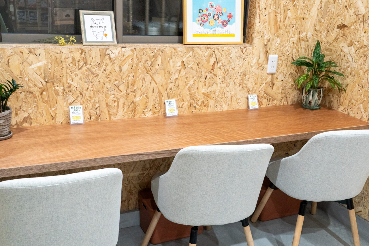 奥には読書スペースもあり、本とジュースまたはクッキーを購入すると1時間無料で利用可能。本のみの購入の場合でも、1時間300円で利用できます。