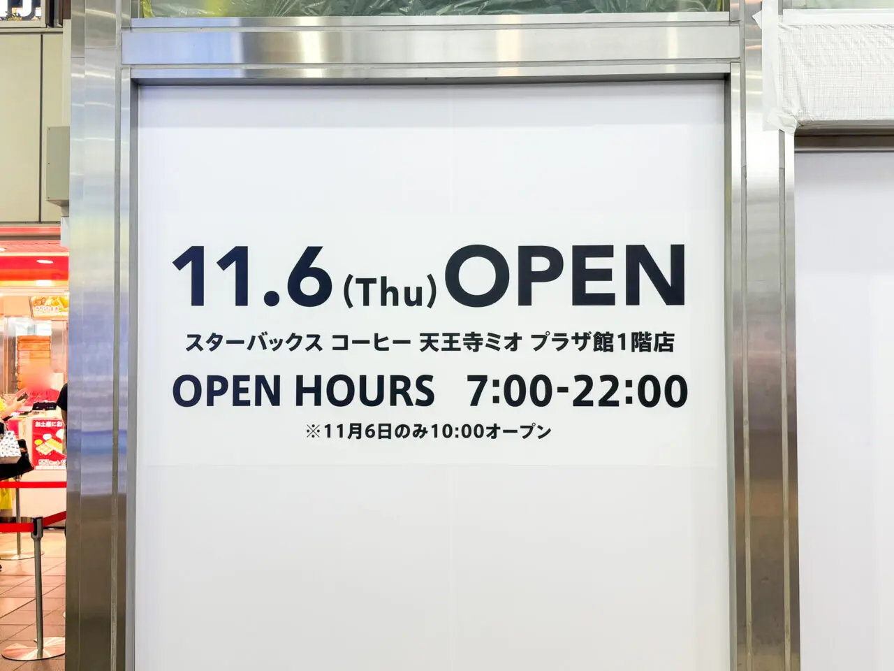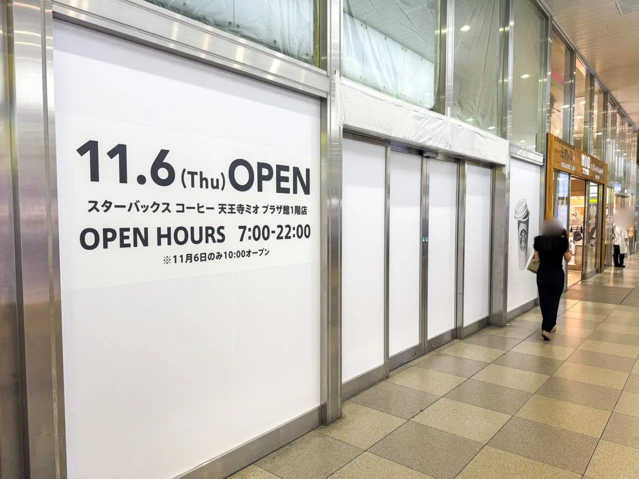 【大阪市天王寺区】天王寺駅すぐの場所にまたまたスタバがオープンします!「スターバックス コーヒー 天王寺ミオプラザ館1階店」が2025年11月6日にオープン!