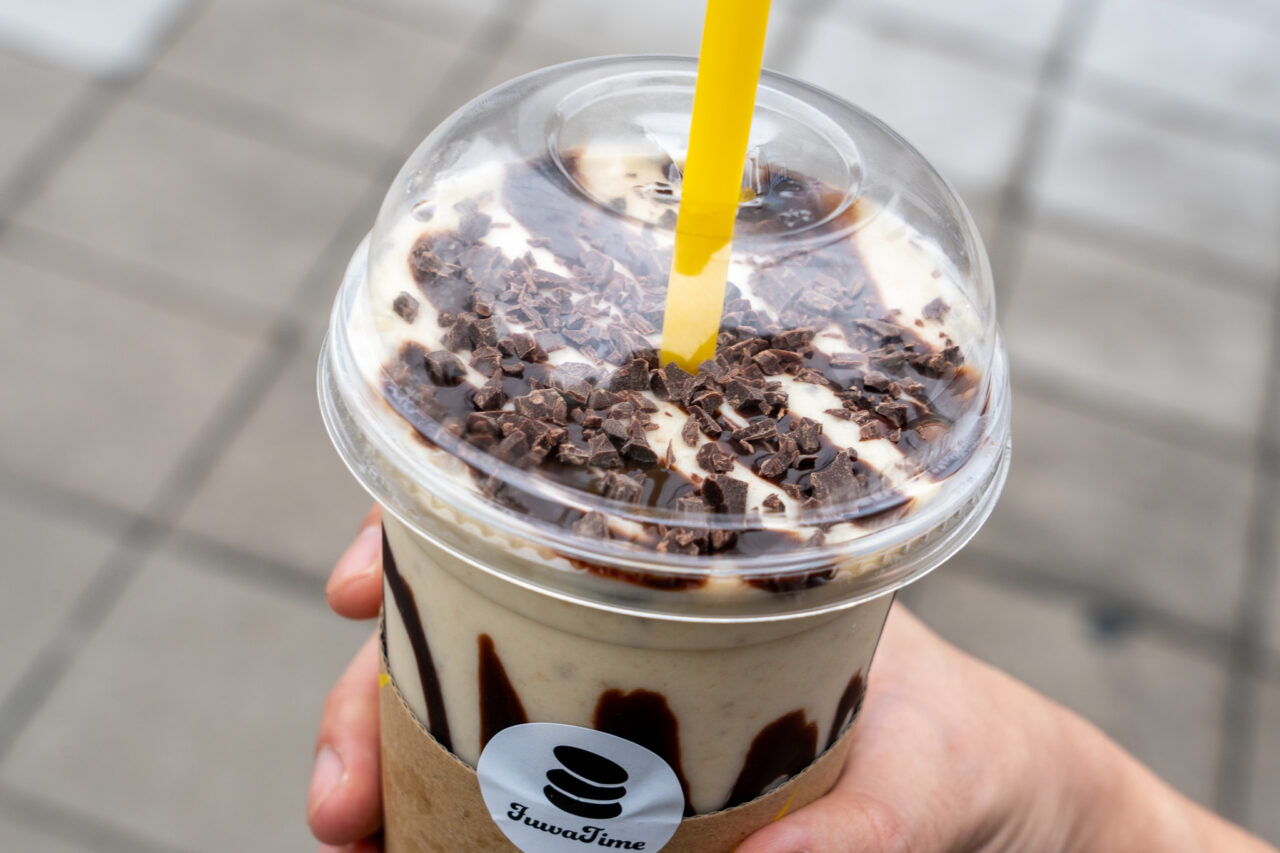 1杯に完熟バナナを3本使用しており、とても濃厚でバナナ好きにはたまらない味わい! チョコレートが良いアクセントになっています。