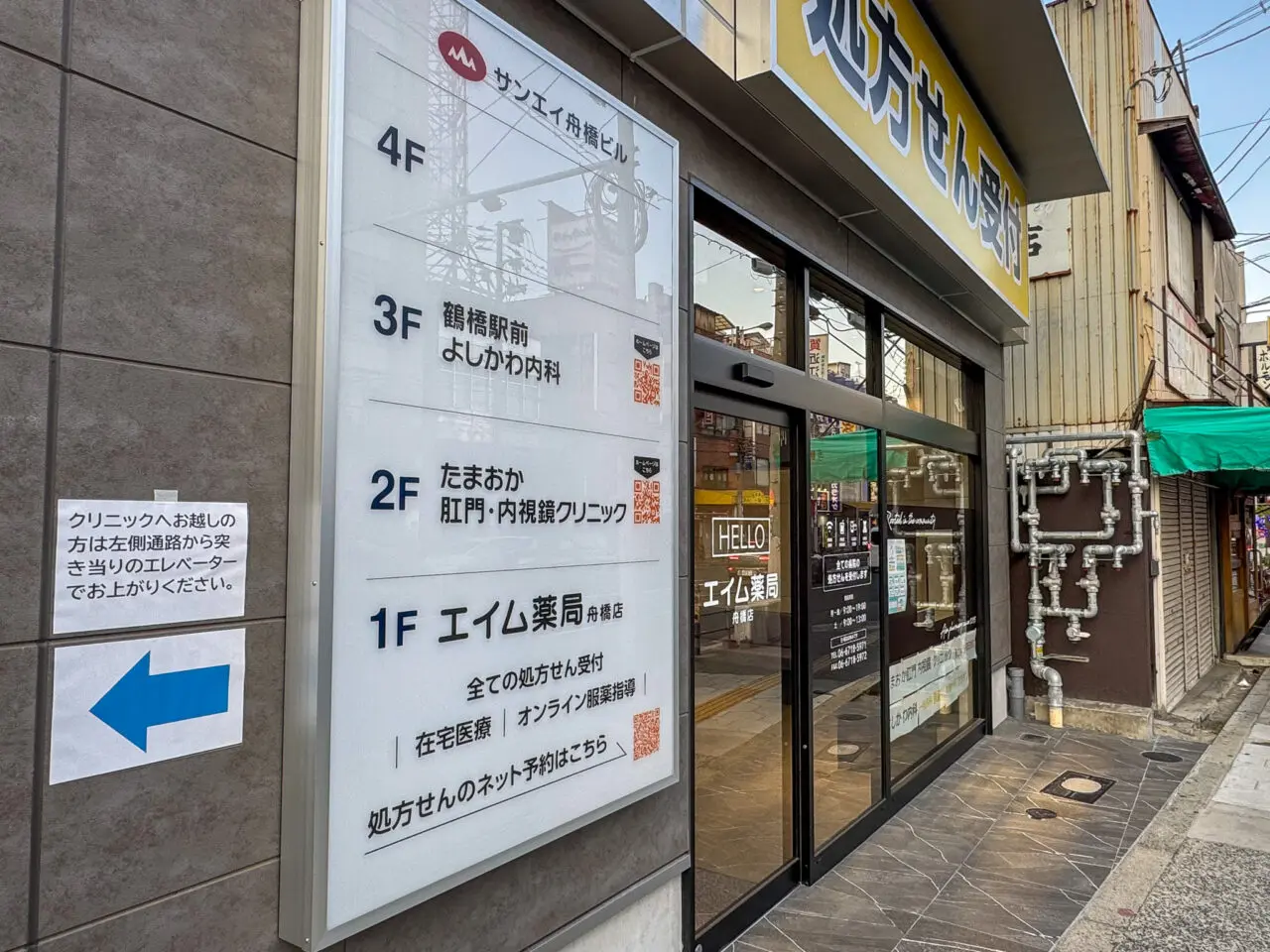 サンエイ舟橋店ビルには、「鶴橋駅前よしかわ内科」と「エイム薬局 舟橋店」が2025年10月にオープンしています。
