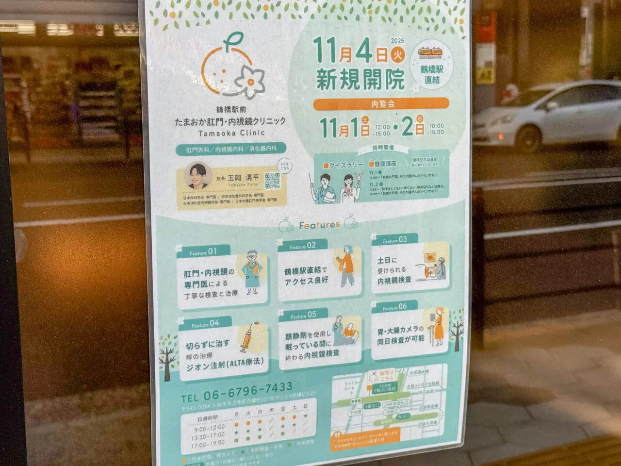 【大阪市天王寺区】鶴橋駅直結!サンエイ舟橋ビルに「たまおか肛門・内視鏡クリニック」・「鶴橋駅前よしかわ内科」・「エイム薬局 舟橋店」がオープンしています!