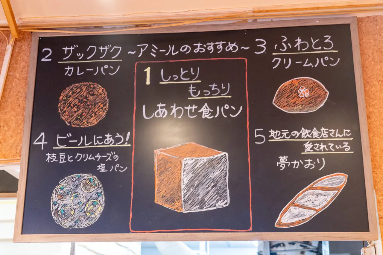 アミールさんのおすすめはしあわせ食パン・カレーパン・クリームパン・枝豆とクリムチーズの塩パン・夢かおりだそうです。