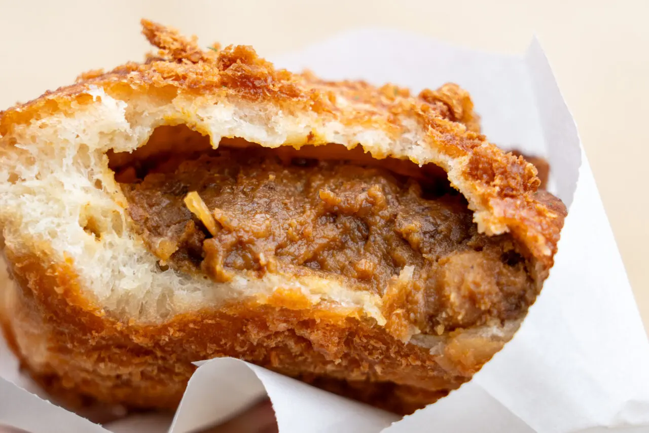 半日以上煮込んだというカレーにはゴロっとした柔らかいお肉が入っていて、野菜の旨味も感じられるとても美味しいカレーパンです。