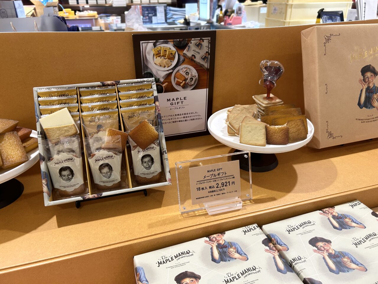 メープルバタークッキーとメープルフィナンシェがセットになった「メープルギフト」や、さらにメープルピスタチオクッキーも入った「ザ・メープルマニアセレクション」など手土産にぴったりな商品も用意。