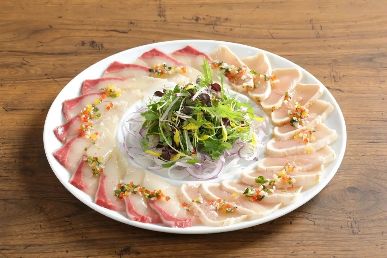 人気の本ズワイ蟹と、繊細な甘みと濃縮された旨味が特徴のマルズワイガニ、ローストビーフ2種はそのままに、新たに海鮮カルパッチョや玉葱のブルーテ、豚肉のロティ バルサミコとみかんのソースなどが登場。