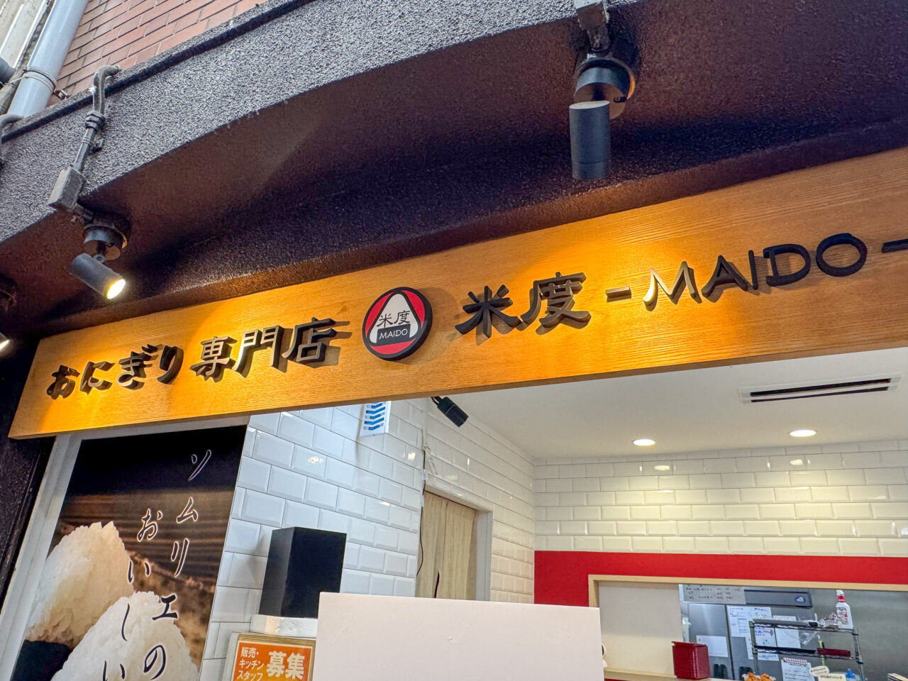 玉造駅すぐ、玉造日の出商店街というアーケード商店街に店を構える「おにぎり専門店 米度 -MAIDO-」を訪れました。