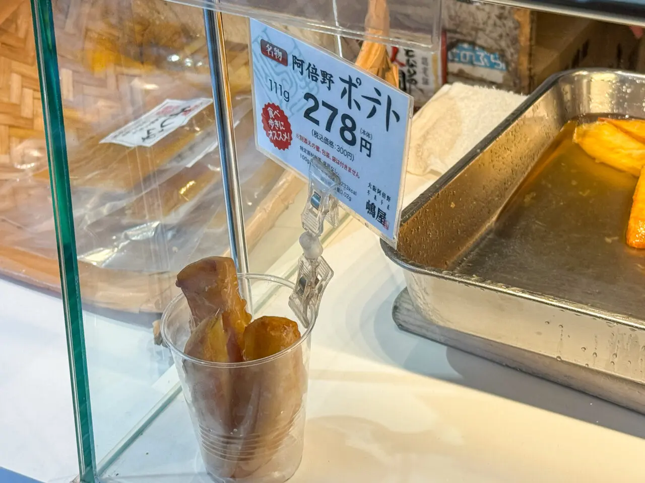 嶋屋さんの名物はこちらの「阿倍野ポテト」。厳選された国産さつまいもを、最高級の綿実油で温度を変えながら、約20分かけてじっくり揚げているというこだわりが詰まったポテトです。