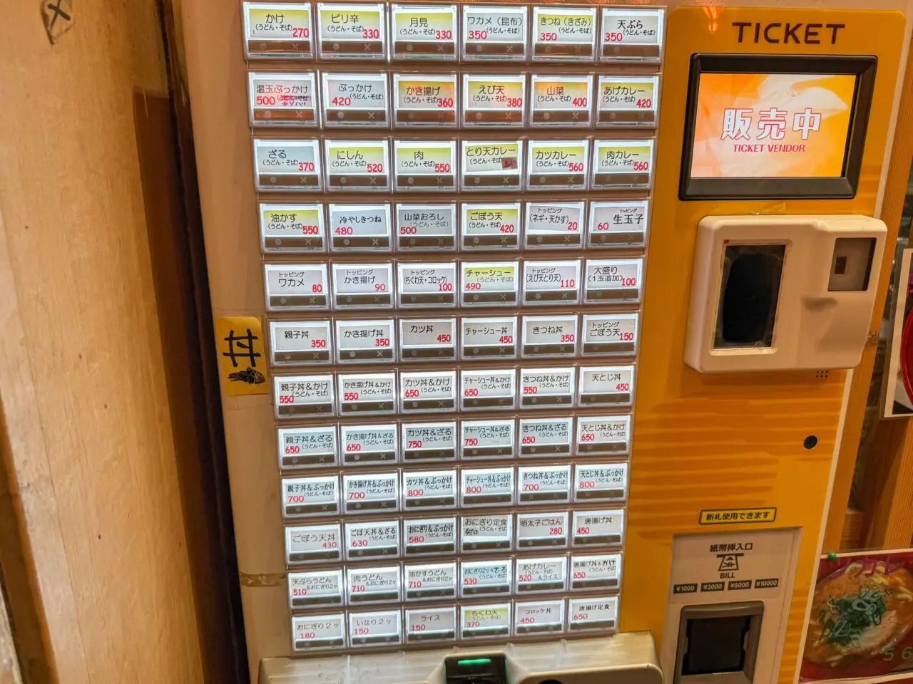 松屋うどんさんはリーズナブルな価格でうどん・そば・丼物を提供しています。店頭に設置されている券売機で食券を購入するスタイルです。