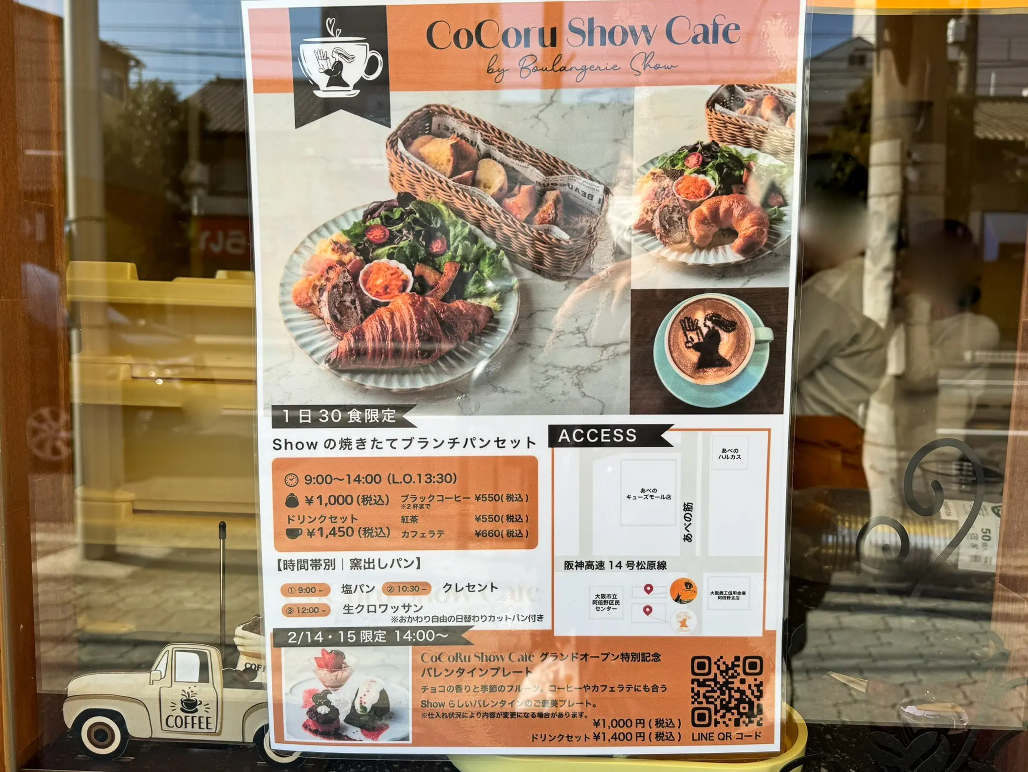 場所はブーランジェリーShowさんのお隣で、店名は「CoCoru Show Cafe」。オープン日は2026年2月14日です。