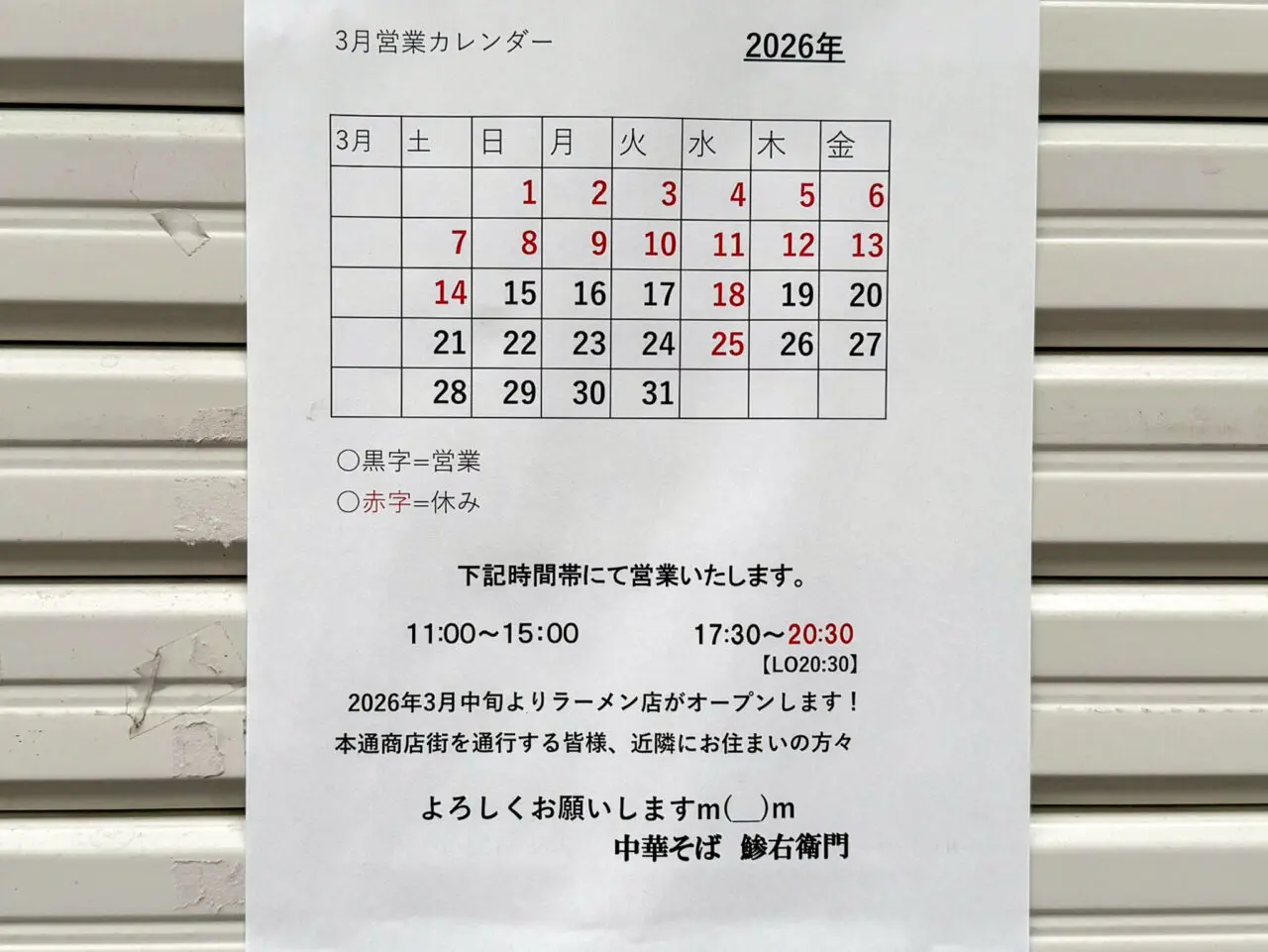 鶴橋本通商店街に、「中華そば 鯵右衛門(あじえもん)」というラーメン店がオープンするそうです!