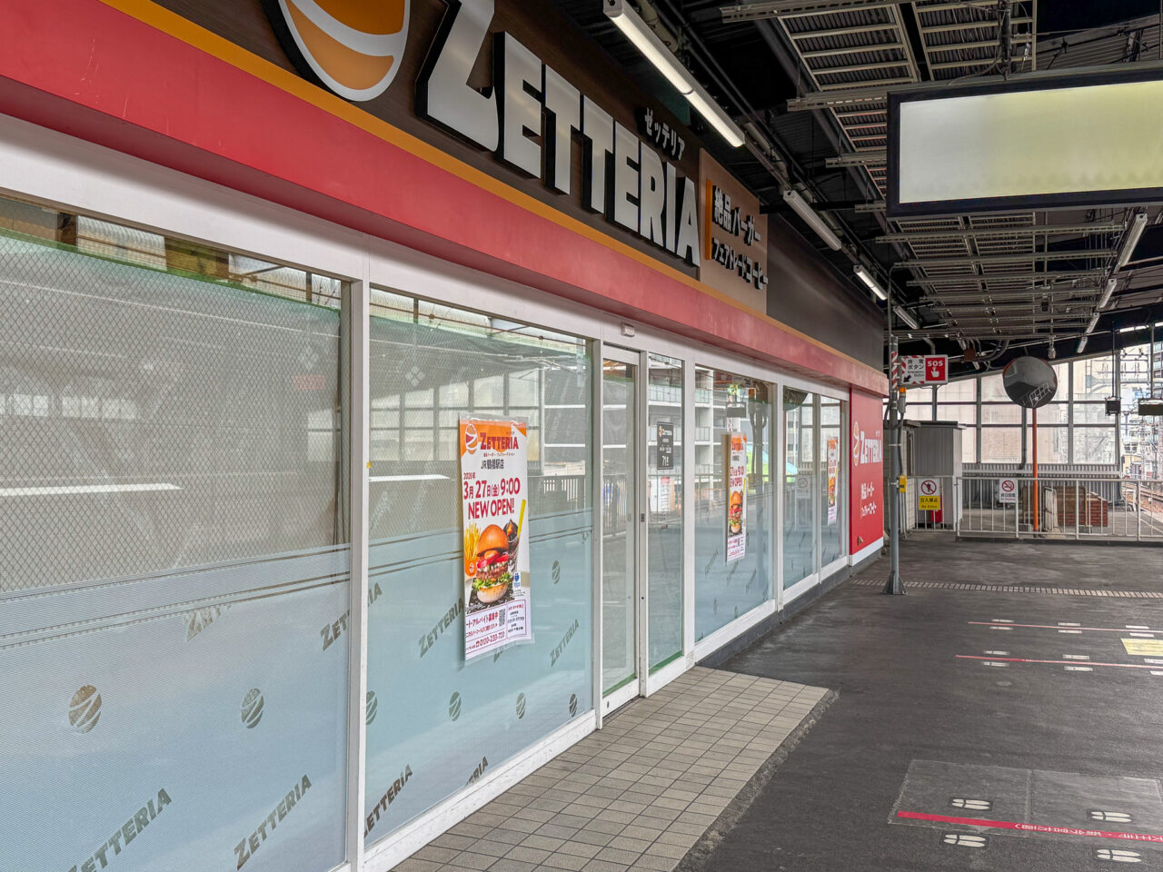 2026年3月22日に訪れたところ、ロッテリアはすでに営業を終了していました。ゼッテリアとしてオープンするのは2026年3月27日(金)の9:00です。