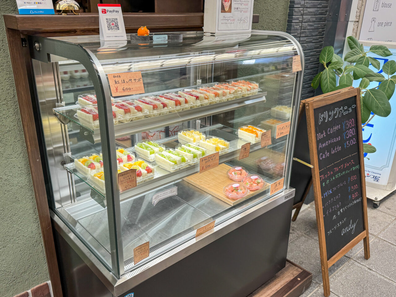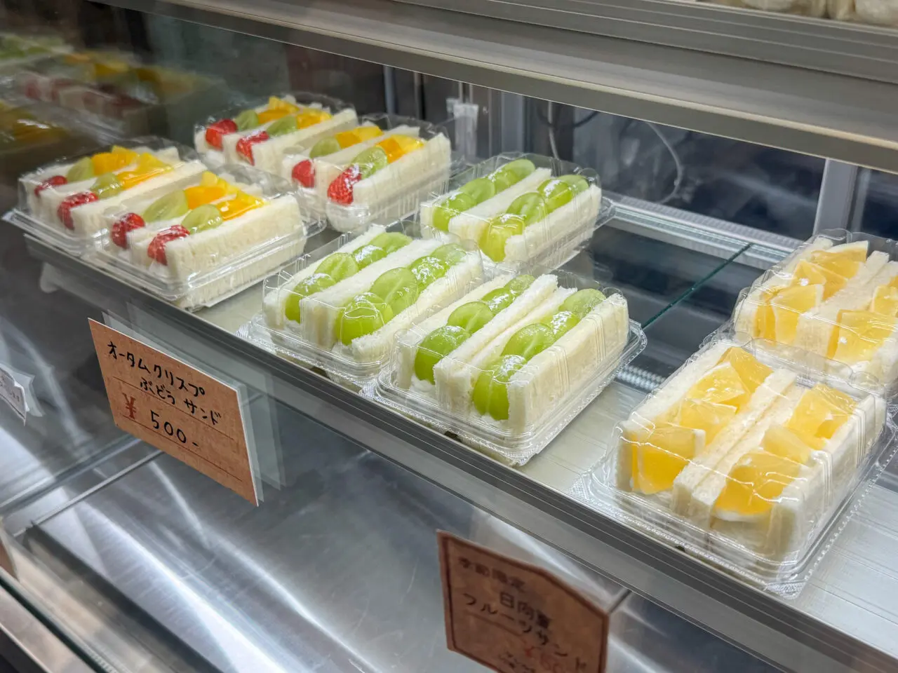 店頭のショーケースには、フルーツサンドが並んでいます。