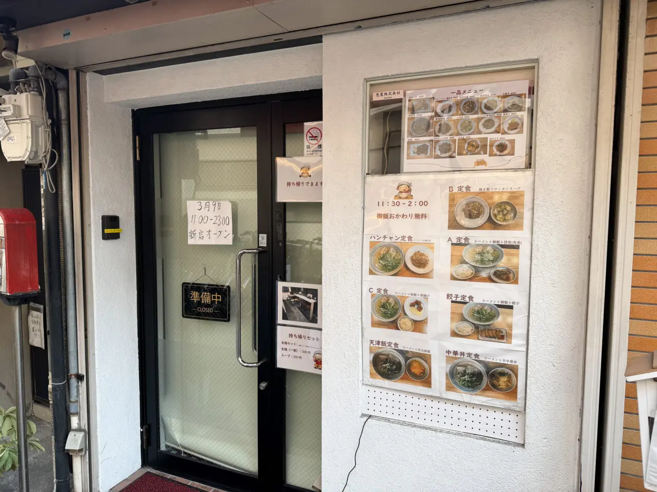 メニューはこちら。ラーメンだけでなく、中華丼や天津飯などの定食メニューもあるようです。
