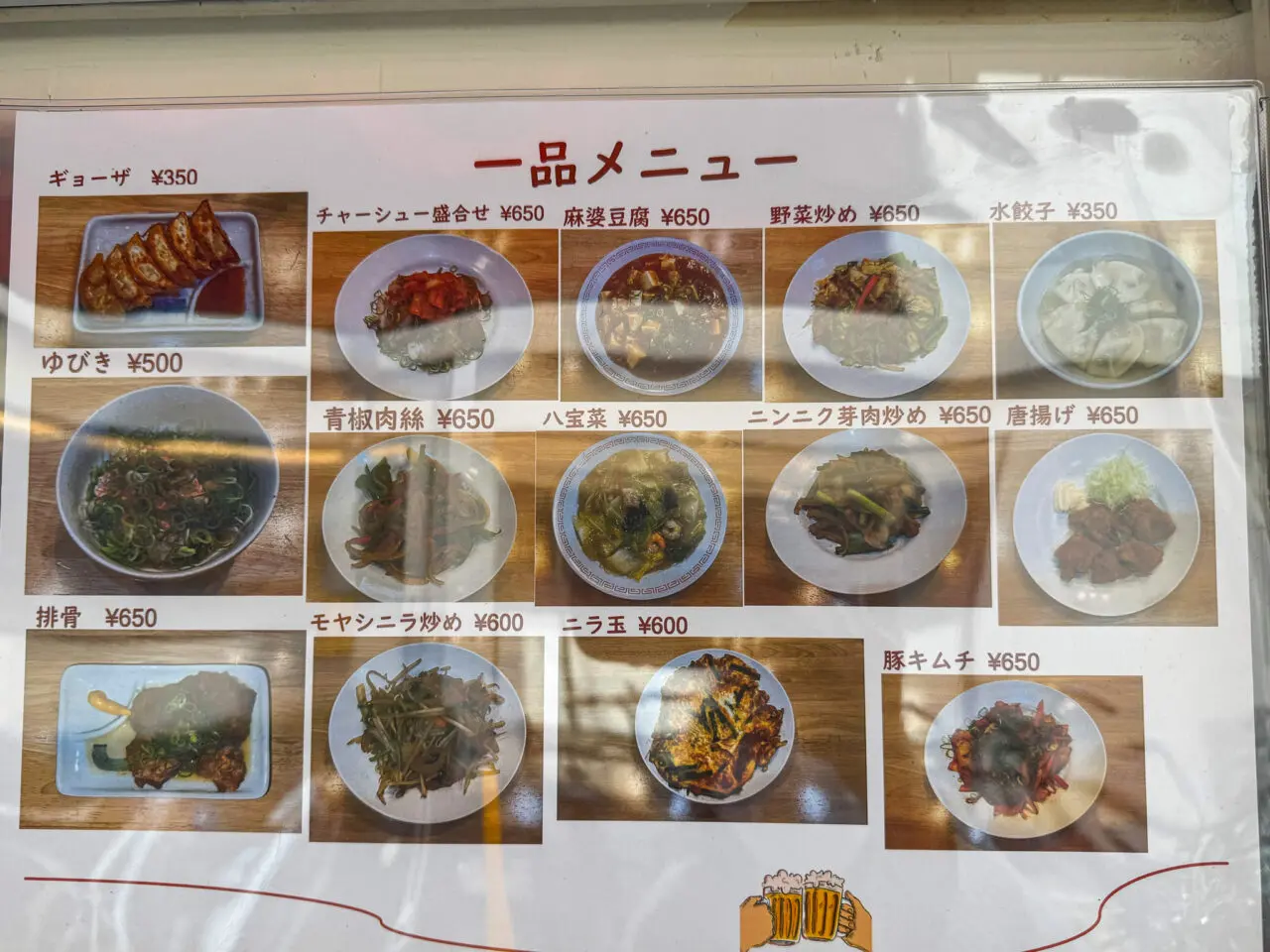 豚キムチやモヤシニラ炒めなど、一品メニューも豊富です。
