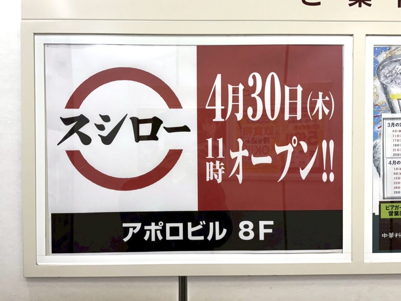 アポロビルに回転寿司人気チェーン店「スシロー」がオープン!