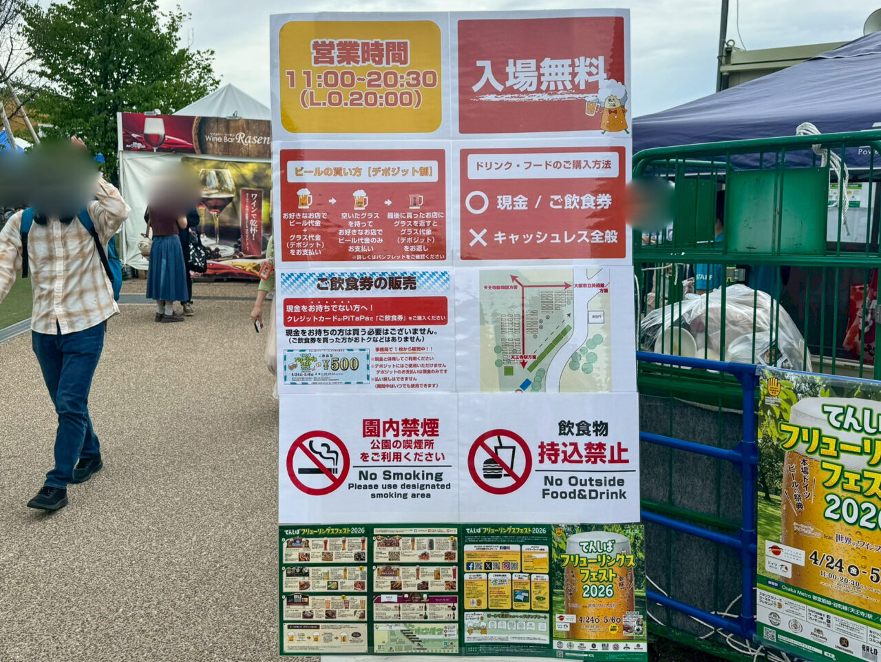 2026年4月26日(日)の15時頃の様子です。会場は心地よい日差しの中でビールや食事を楽しむ人たちで大変な賑わいを見せていました。