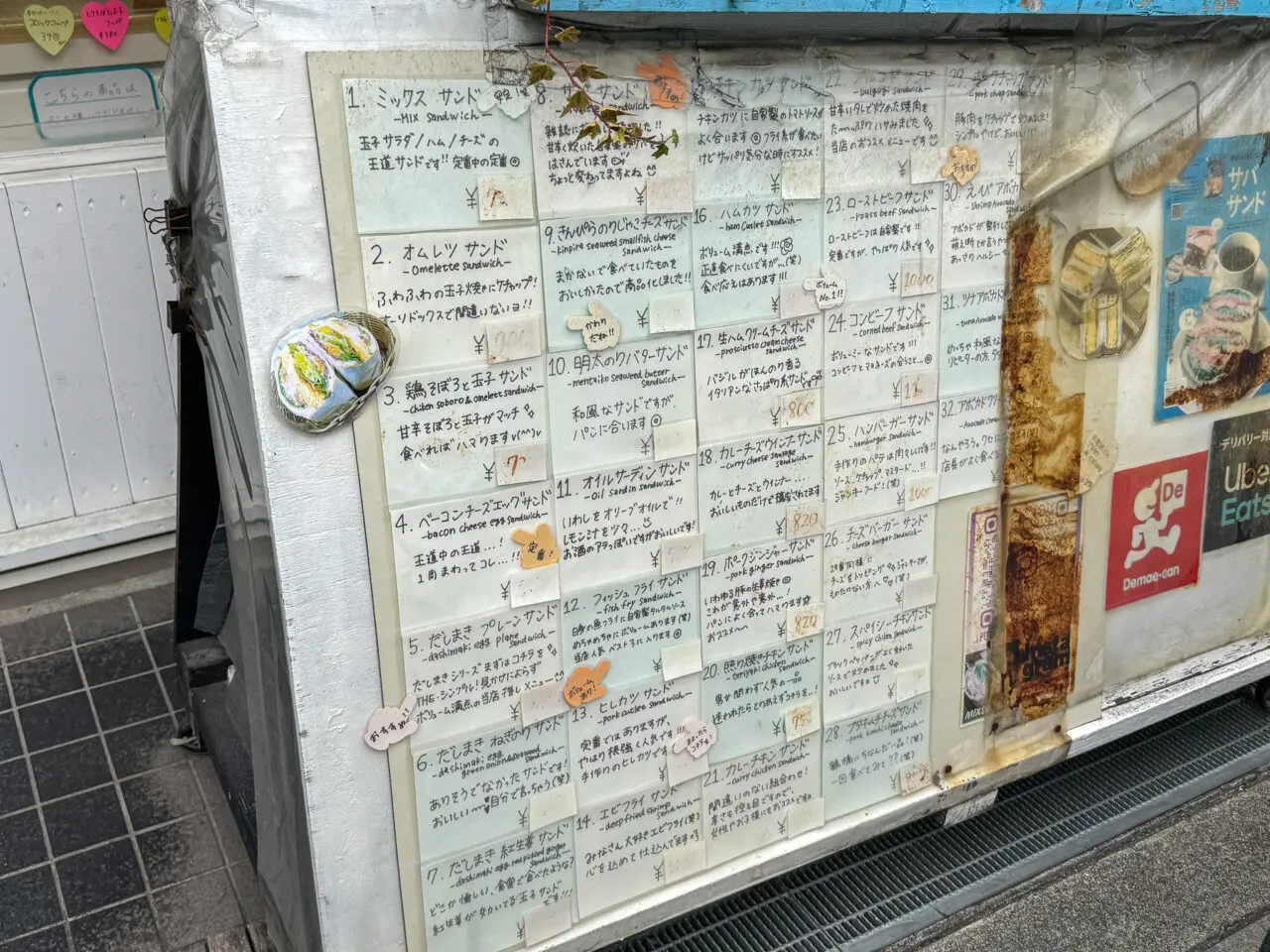 2026年3月に訪れた際のメニューはこちら。王道の「ミックスサンド」から「明太のりバターサンド」などの個性派まで、メニューが豊富でどれにしようか迷ってしまうほど。