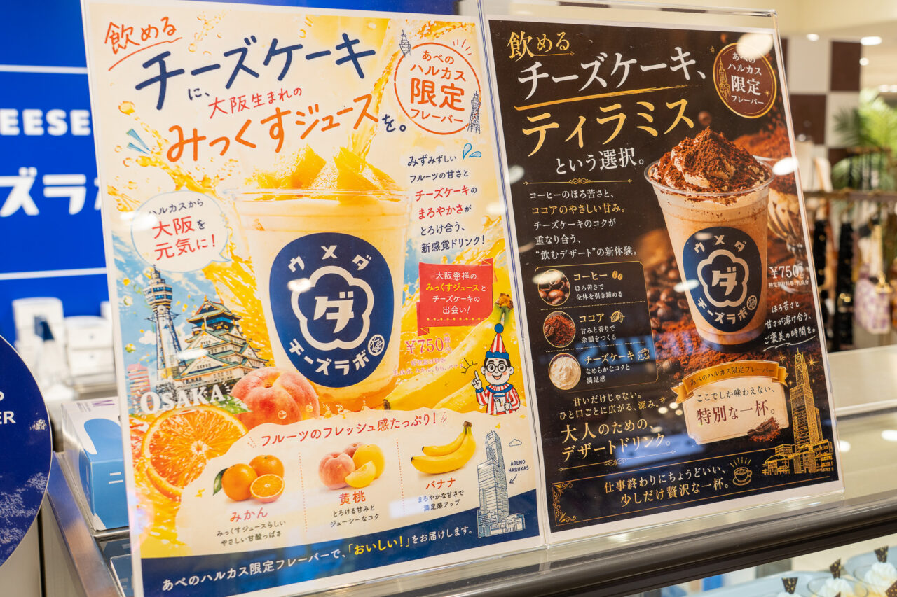 フレッシュチーズの食感を存分に楽しめる人気の「飲めるチーズケーキ」にも限定フレーバーとして、大阪らしい「みっくすジュース」味や「ティラミス」味が登場!ショッピングの合間に楽しみたいですね。